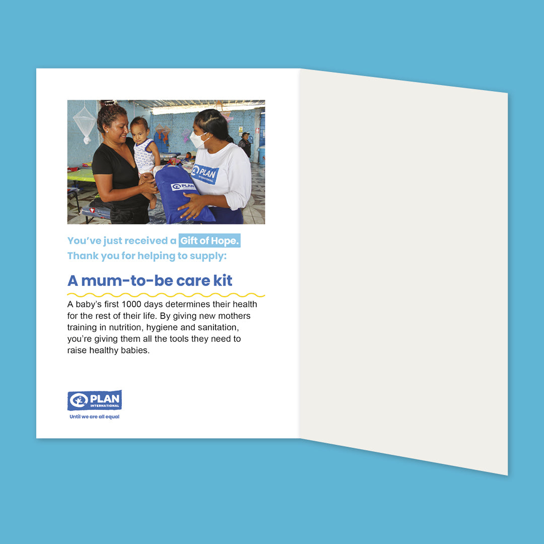 Once you choose your gift (or gifts!), we’ll send you a physical card or digital card you can forward via email that shows the gift in action. Then all you need to do is write your personal message and forward it on to the gift recipient. Just want to support our work? Buy one for yourself and proudly display it on your mantelpiece!