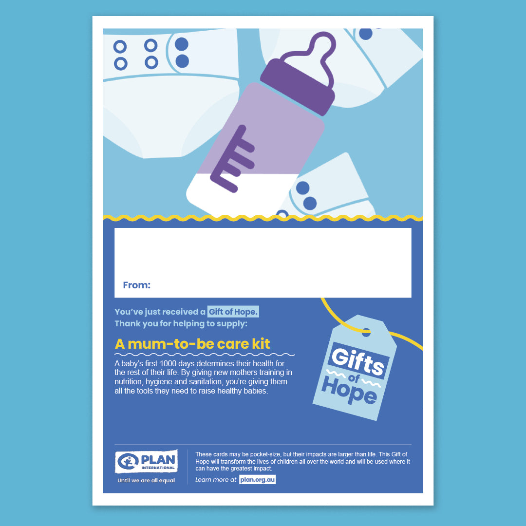 By choosing a Gift of Hope, you’re not just giving a heartfelt gift to a loved one or your network – you’re helping create a world where all children can thrive, and girls can take their rightful place as equals. You’re supporting communities to survive disaster, ensuring children and mothers are given a healthy start to life, and empowering girls to achieve their dreams. A better now for her, a better future for everyone. Pretty amazing, isn’t it?