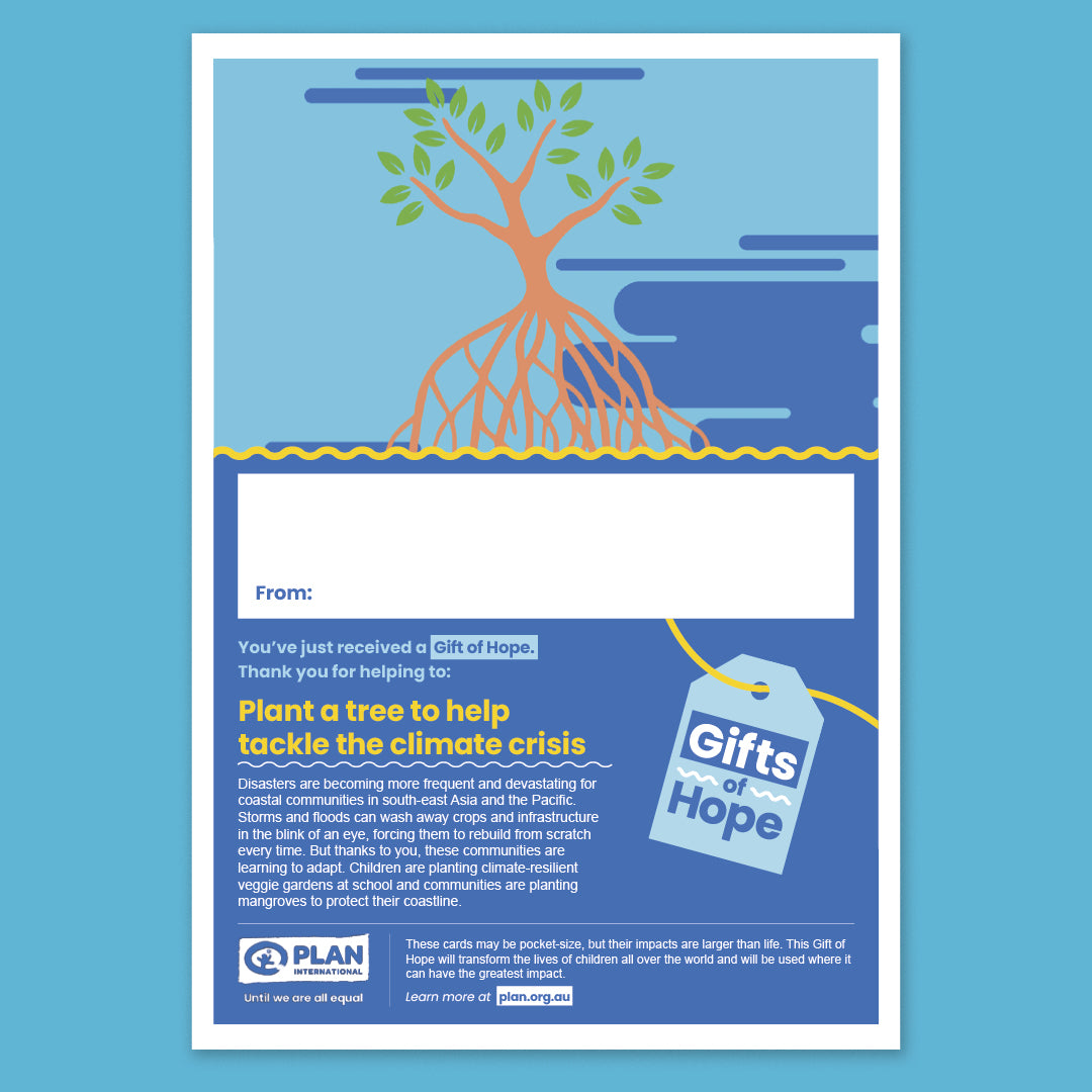 By choosing a Gift of Hope, you’re not just giving a heartfelt gift to a loved one or your network – you’re helping create a world where all children can thrive, and girls can take their rightful place as equals. You’re supporting communities to survive disaster, ensuring children and mothers are given a healthy start to life, and empowering girls to achieve their dreams. A better now for her, a better future for everyone. Pretty amazing, isn’t it?